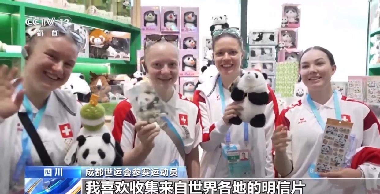 成都世运会参赛运动员:我拿了我喜欢的第一张明信片,我喜欢收集来自世界各地的明信片,很高兴在这里找到了一个关于熊猫的。