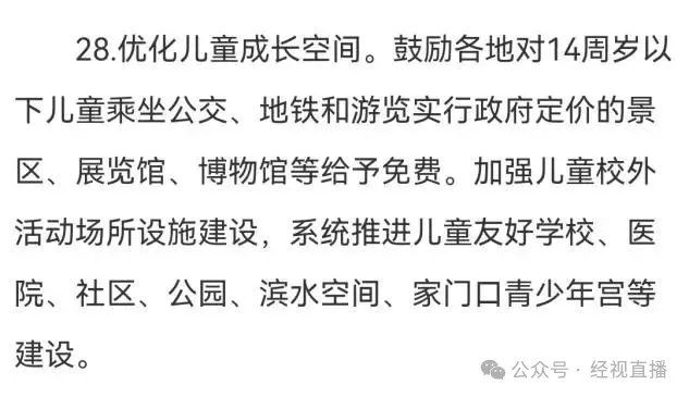 7月14日,湖北省人民政府办公厅印发《关于加快完善生育支持政策体系更加务实有效建设生育友好型社会的若干措施》的通知。其中提到,鼓励各地对14周岁以下儿童乘坐公交、地铁和游览实行政府定价的景区、展览馆、博物馆等给予免费。8月8日,经视直播记者就此政策询问了多地相关单位和部门。