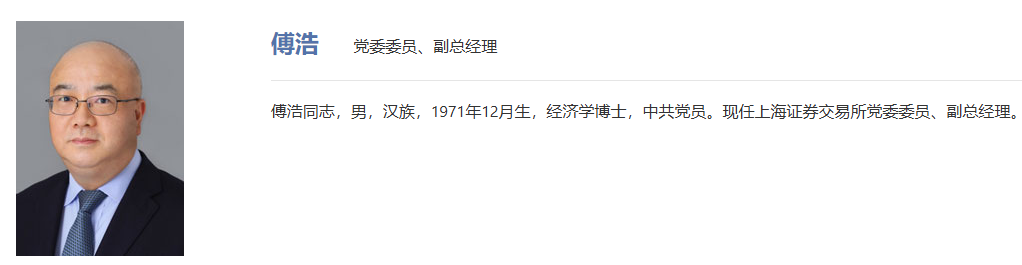 8月8日,澎湃新闻记者发现,上交所官网资料显示,傅浩已履新上交所党委委员、副总经理。