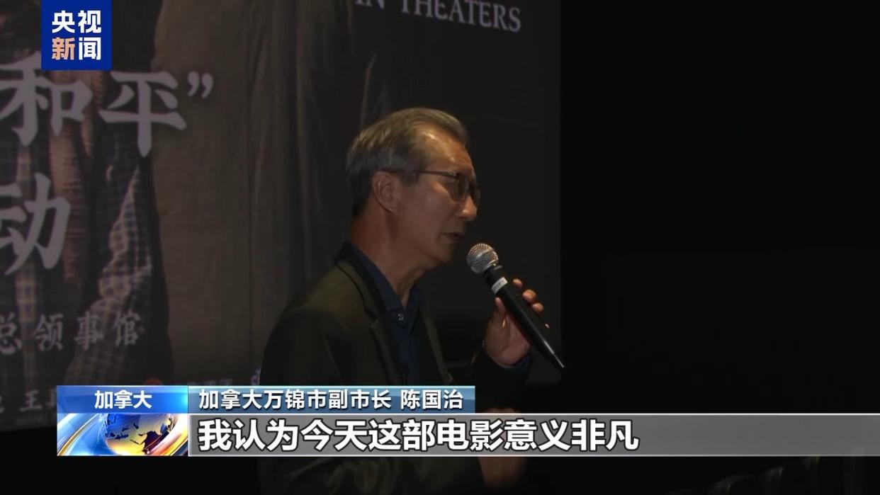 中国驻温哥华代总领事曾智也出席了首映式。曾智强调,牢记历史的经验和教训,绝不是为了延续仇恨,而是为了以史为鉴,尊重历史,维护和平。曾智表示,中加两国在二战期间曾经在东方战场并肩携手作战,真诚希望与领区各界一道,铭记历史,珍爱和平,缅怀先烈,开创未来,共同秉持正确的二战史观,共同维护战后的国际秩序,捍卫国际的公平正义,为人类的和平与发展,共同谱写新的篇章。