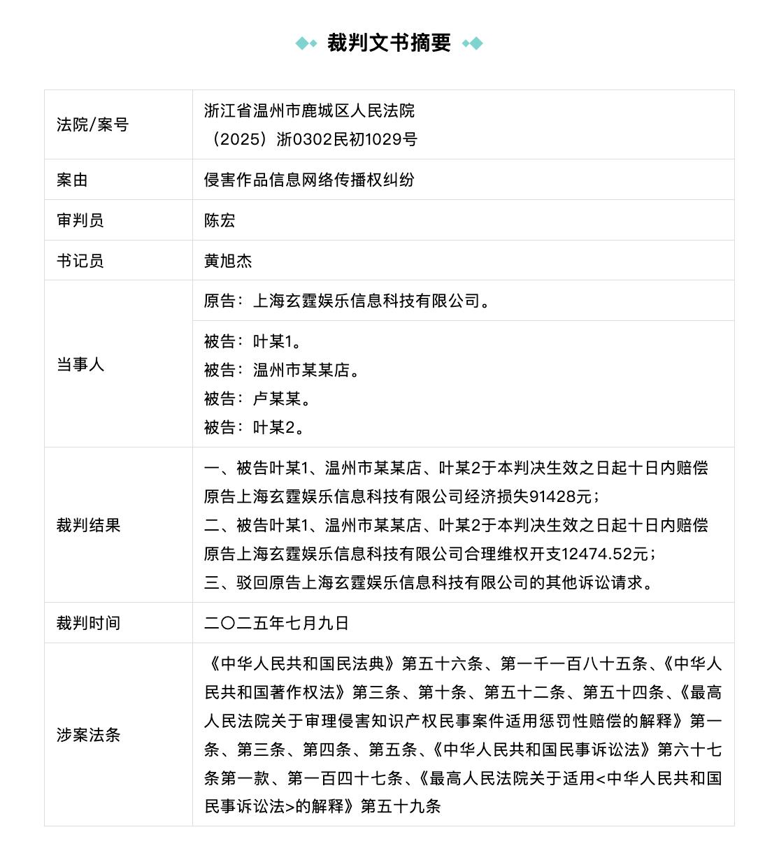 近日,温州叶某侵权《吞噬星空2:起源大陆》一案宣判,法院认定侵权人叶某故意侵权、情节严重,要求承担2倍惩罚赔偿,最终判赔经济损失和维权开支共计10万余元。