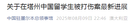目前大家都很关心近日塔州一名33岁留学生被当地五名未成年人殴打致重伤送医救治的情况,我馆通过主动联系受害者家属获悉的最新情况如下: