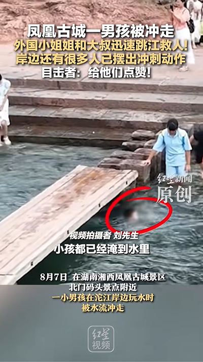 8月9日,据媒体报道,7日,在湖南湘西凤凰古城景区北门码头景点附近,一小男孩在沱江岸边玩水时不慎被水流冲走。