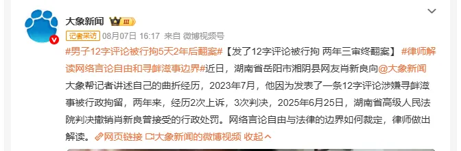 两年来,他经历2次上诉,3次判决。而这份他求改判的行政处罚,最初只是因为在一段30秒视频的下方,发布了一条12字评论。