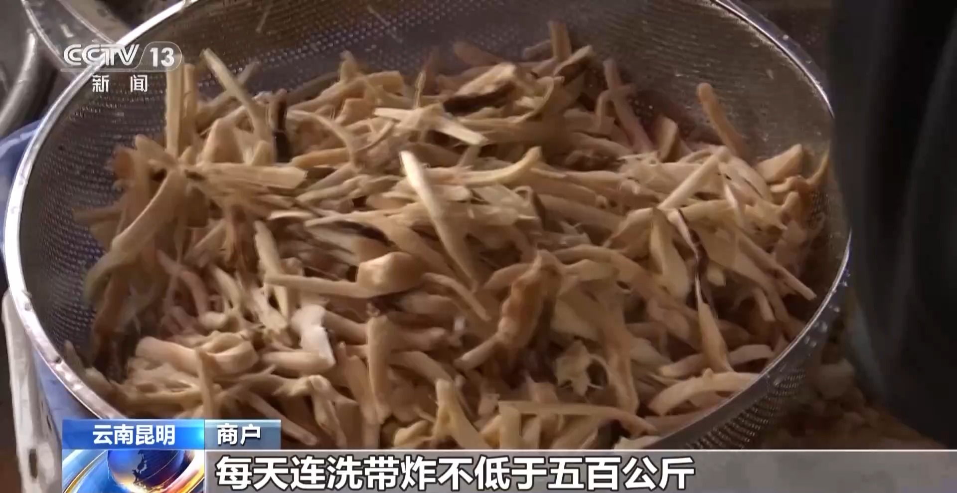 商户:八月份、九月份是最旺的时候,人最多的时候。每天连洗带炸不低于五百公斤,像炸油鸡枞每天不低于五十个顾客,我们都有记录。