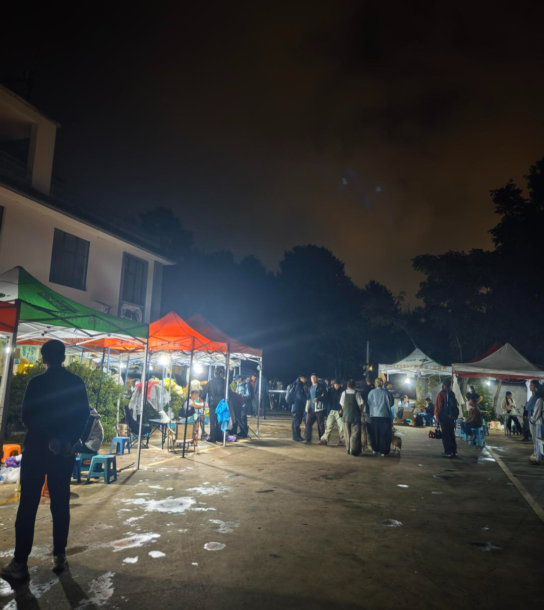 ▲11日晚10时,仍有志愿者集结上山搜寻