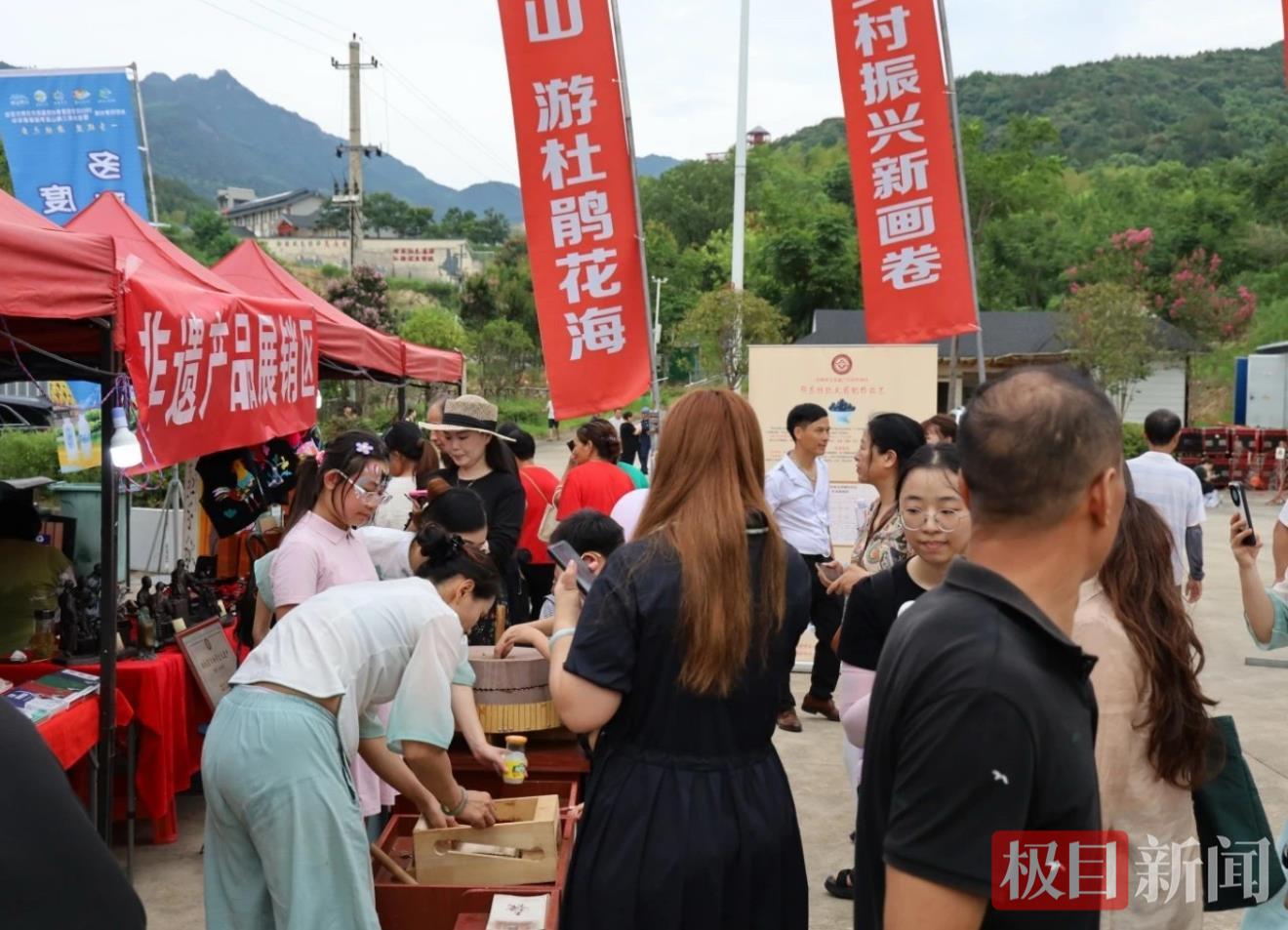 将文化展示与旅游推介巧妙结合,三角山“文旅推介官”现场“种草”漂流、民宿、游玩线路,向全国游客发出“纳凉请柬”。同时精心设置了10余个特色市集展位,展销浠水文创产品和农特产品,绿杨桥封缸酒、浠水泥塑等特色非遗产品琳琅满目,茶叶、藕粉、手工鱼面等浠水特产风味浓郁,吸引了不少游客群众前来选购。直播带货活动同步火热开启,网红达人带领线上观众一同解锁地道浠水味。