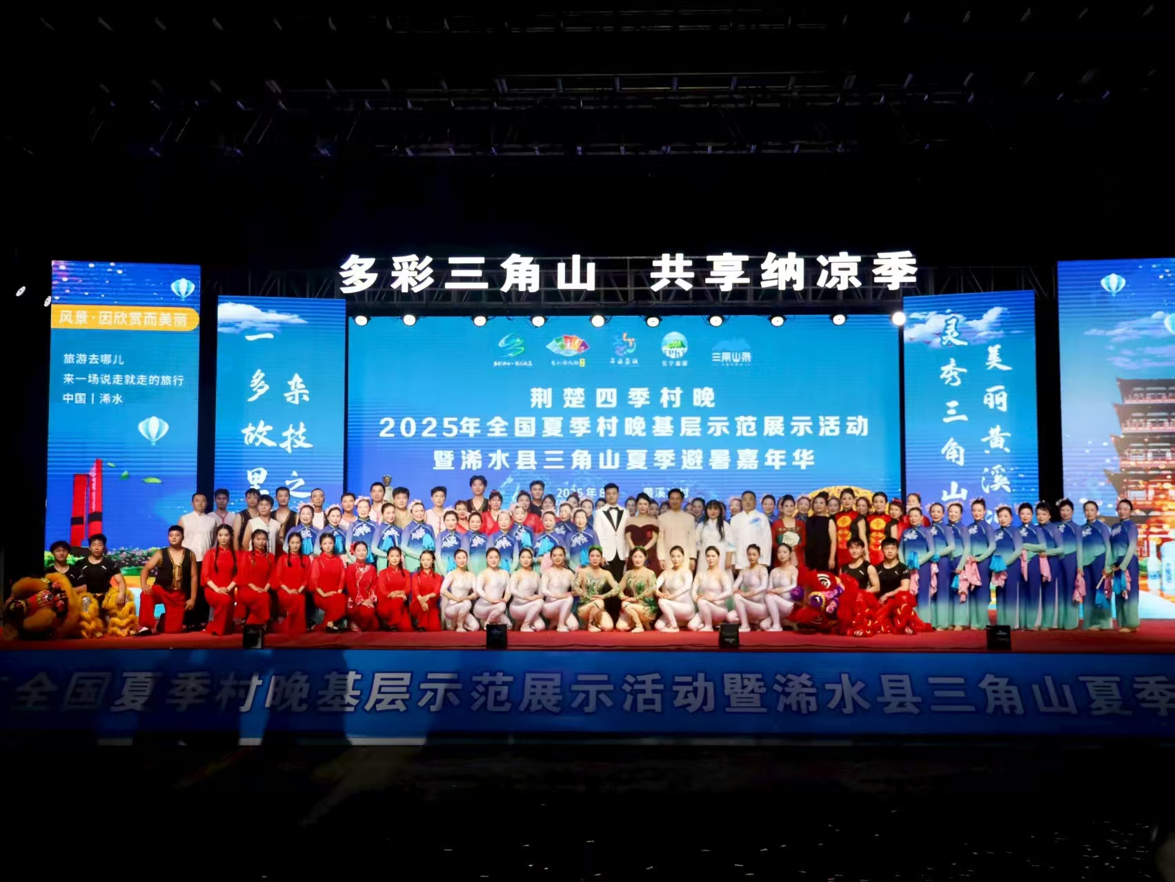 8月8日晚,湖北省浠水县三角山旅游度假区黄溪冲村人声鼎沸、热闹非凡。2025年全国夏季“村晚”基层示范展示活动在这里举行,这场以“多彩三角山 共享纳凉季”为主题的“村晚”,为当地村民和游客呈现了一场融合乡土风情、红色文化与时代气息的视听盛宴。