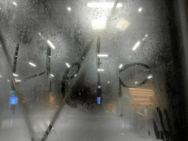 △有过夜的游客在窗户上利用水汽写下“Help”(救命)。