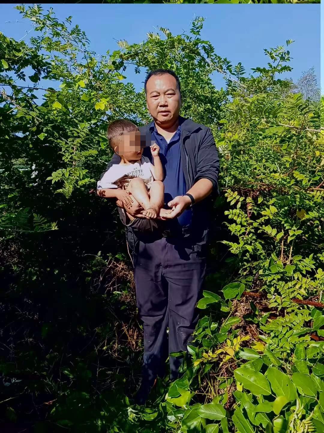 杨先生说,小宇看见他时,眼神里带着几分惊恐。他连忙轻声安慰孩子:“不要怕,叔叔来抱你。”说着,他便小心翼翼地将这个走失三天三夜的小家伙从灌木丛中抱了出来。