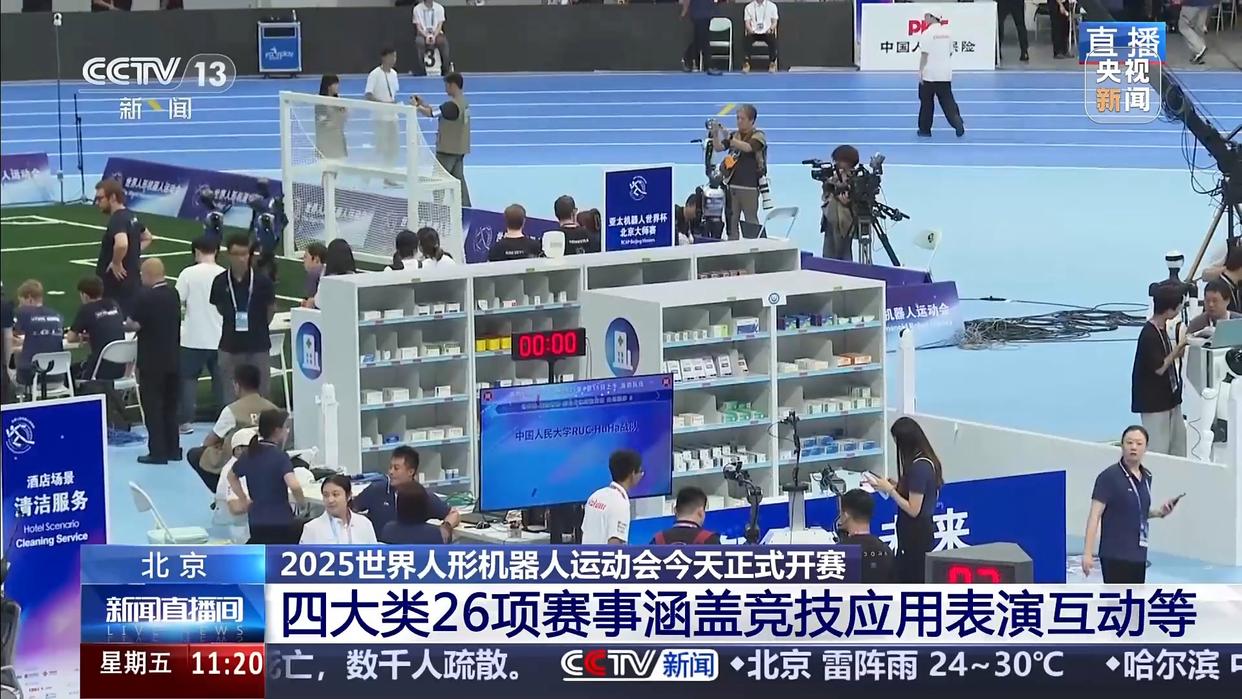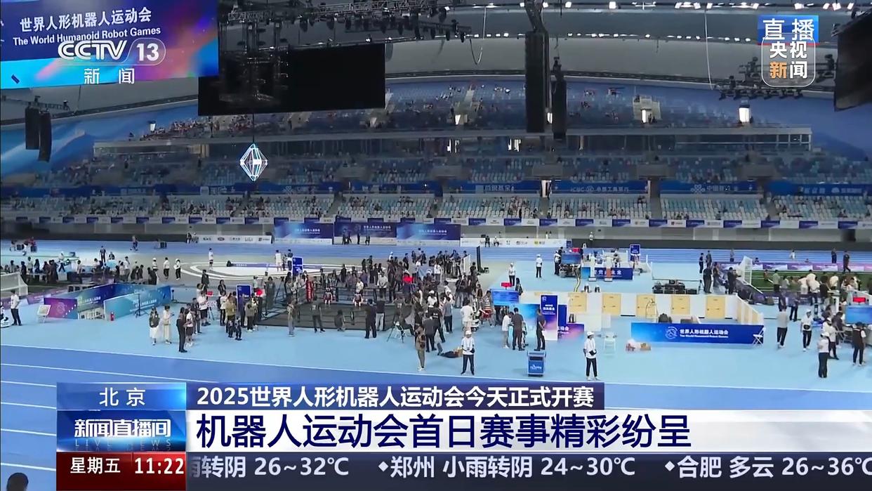 由北京市人民政府、中央广播电视总台等联合主办的全球首个人形机器人运动会昨晚(14日)在北京国家速滑馆开幕,今天是第一个比赛日,都有哪些项目要进行比赛?赛况如何呢?