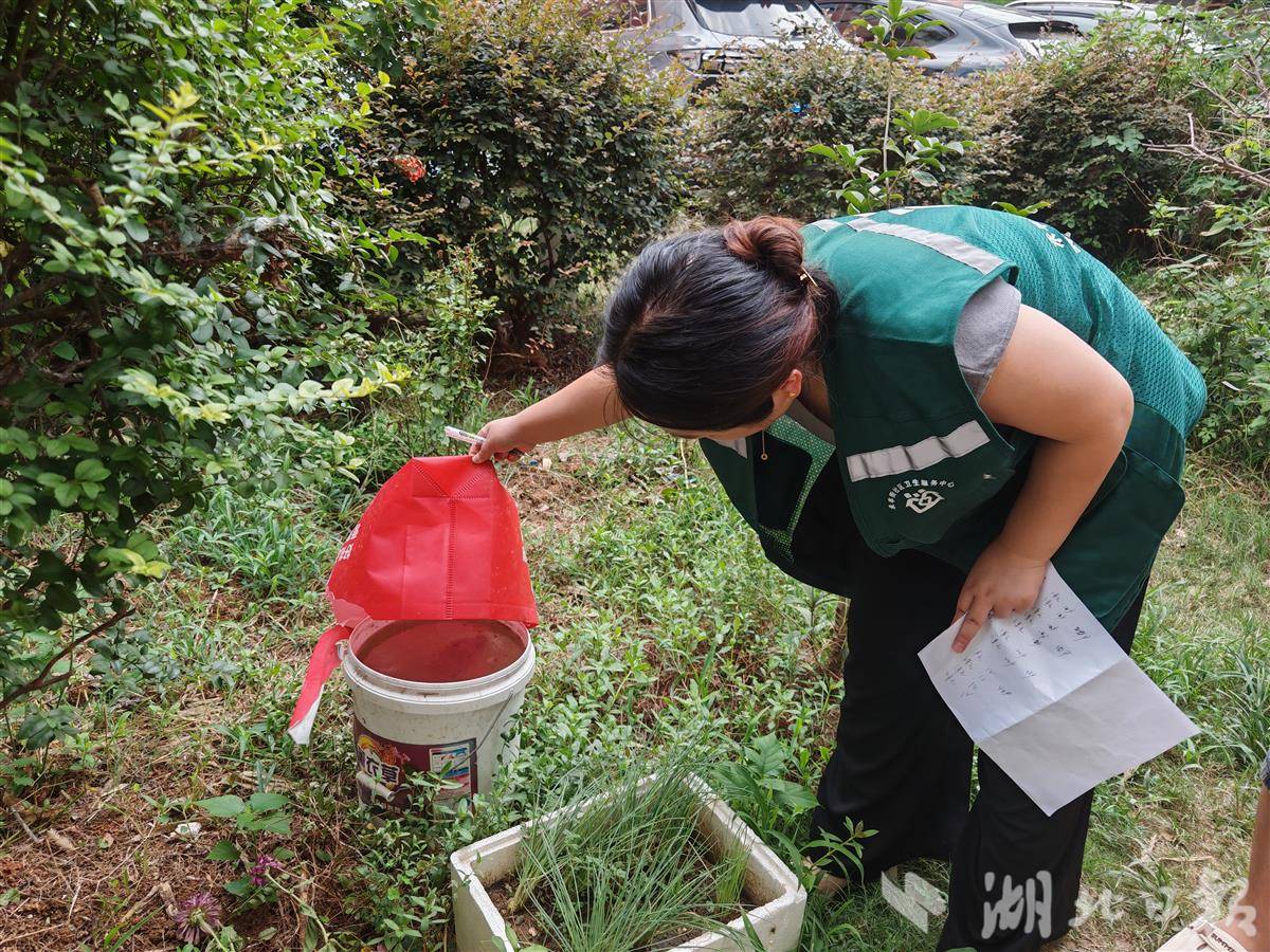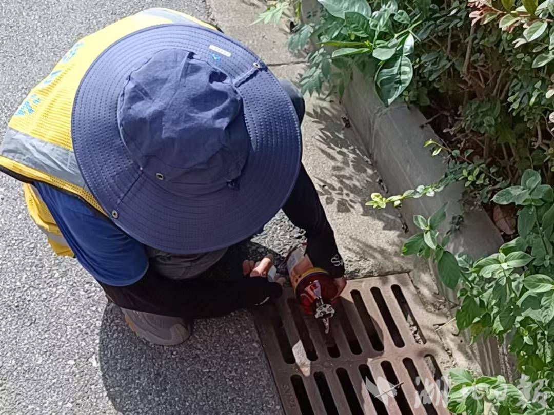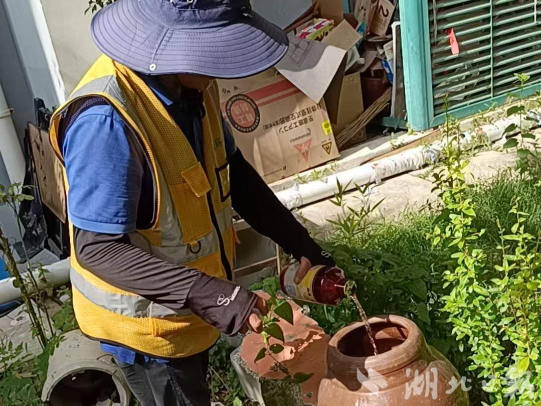 永丰街道社区卫生服务中心的医护人员检查小区内居民容器积水情况,讲解登革热、基孔肯雅热等蚊媒传染病的传播途径与危害,重点传授家庭防蚊和灭蚊实用技巧,强调个人防护重要性。标冠环保科技(武汉)有限公司的工作人员则重点对雨水井等“隐蔽死角”进行蚊蝇药投放,倾倒积水20余处。