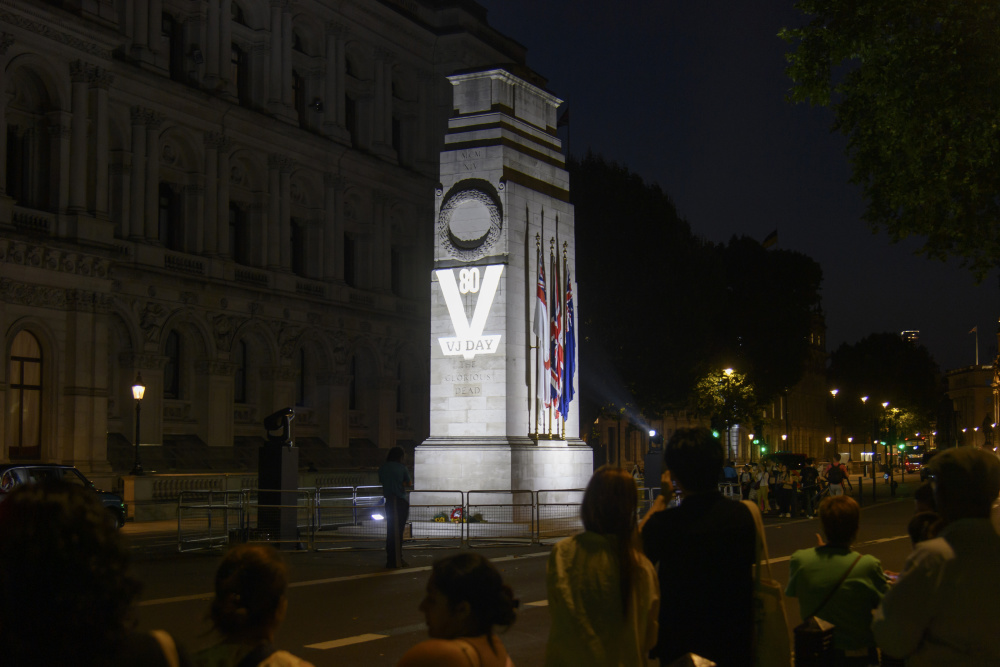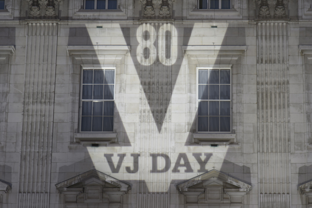 当晚,英国点亮多处地标建筑,包括白金汉宫、唐宁街10号、议会大厦等,纪念二战对日作战胜利80周年。