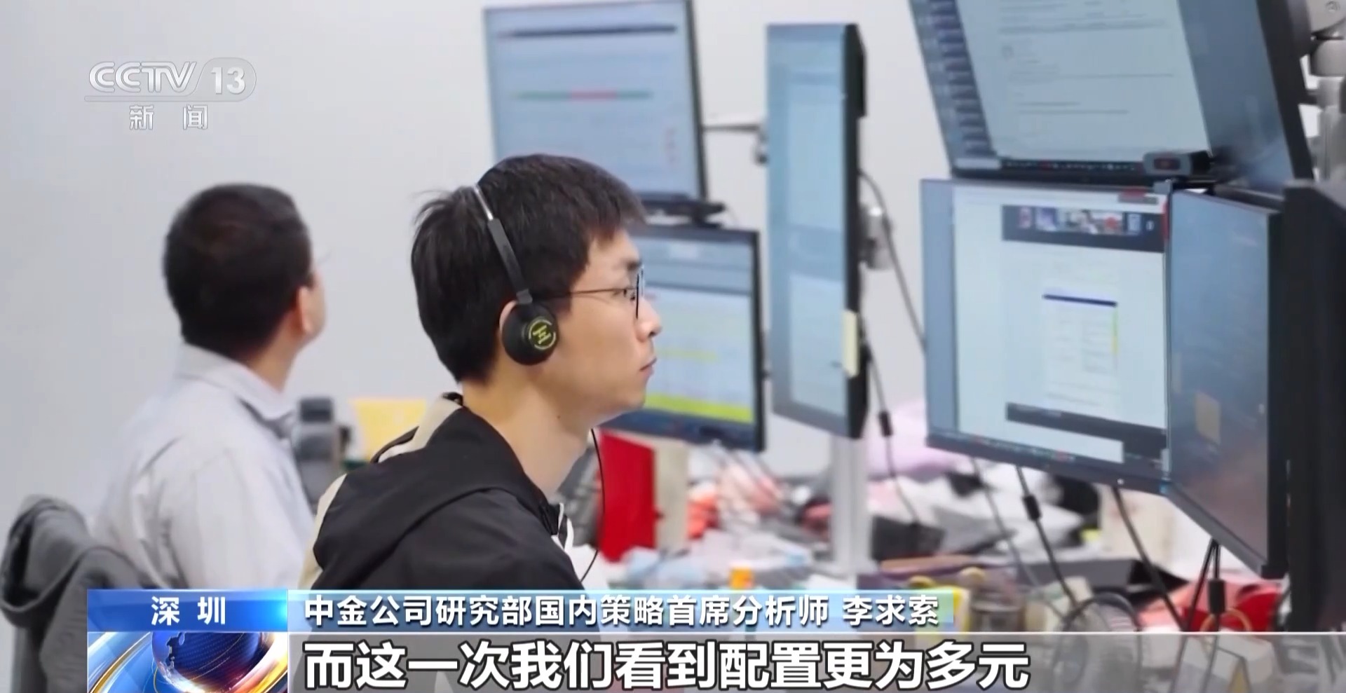 中金公司研究部国内策略首席分析师 李求索:在2014年的时候,双融的增量资金比较多地去重配了来自像金融地产这样的传统性行业,而且配置的比例相对比较集中,而这一次我们看到配置更为多元。