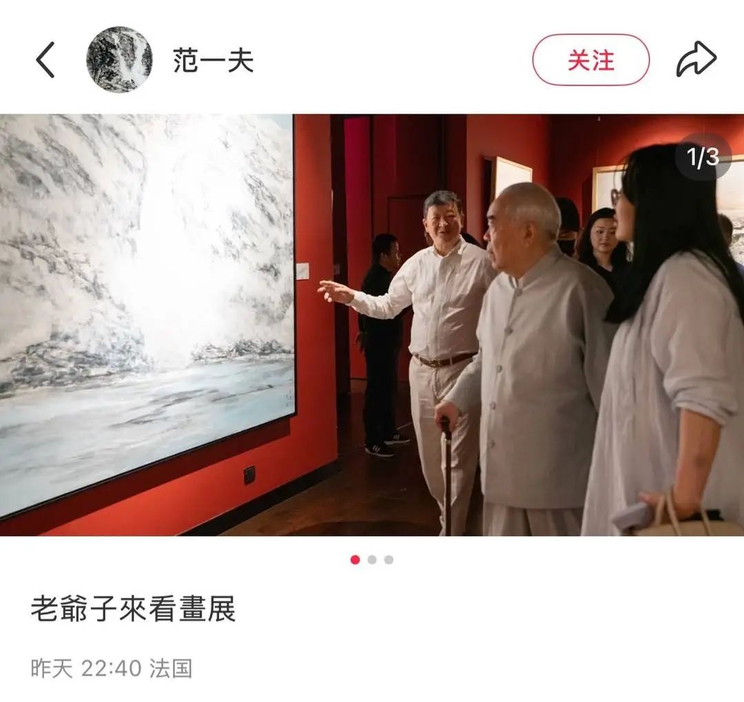 然而,仅仅数小时后,在8月16日22时40分,小红书名为“范一夫”的账号发布图文,称“老爷子来看画展”,没有标明看展时间和地点,而其IP地址显示为法国。记者查询发现,该账号并未实名认证。