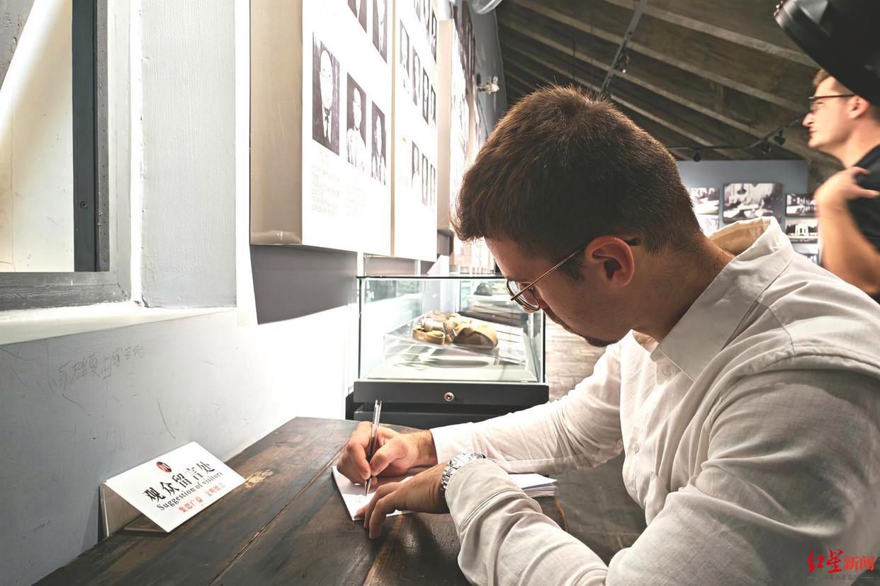 近日,马库斯和好友士杰、钟灏松一行抵达成都,马不停蹄地赶往建川博物馆参观。在博物馆的留言簿上,马库斯用中文写下“我们从来不忘记,我们从来不会忘记”的留言。