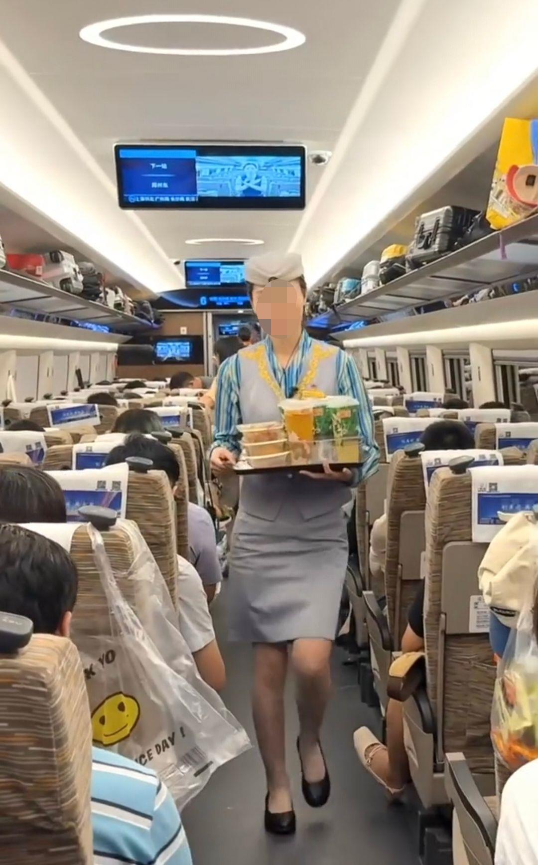 极目新闻记者搜索发现,中国铁路广州局官方抖音号曾于2024年8月发布了一条推介高铁奶茶的视频,视频中高铁乘务人员用托盘端着几杯奶茶以及其他食品,随后乘务人员将其中一杯奶茶送到了一位乘客的座位上。也曾有不少乘客发视频表示,他们曾在高铁上买到过冰激凌。