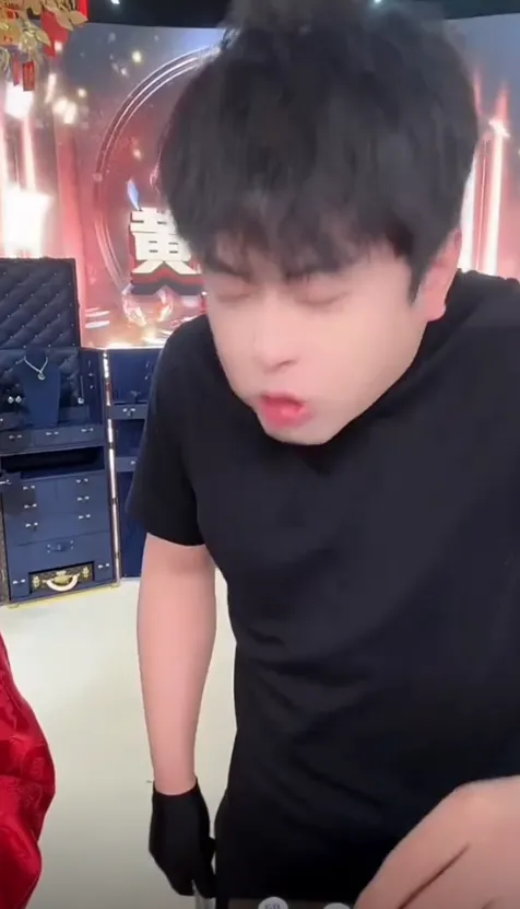 辛巴在直播时咳嗽不止。