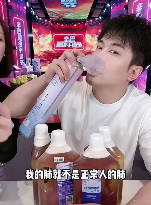 辛巴在直播中吸氧。