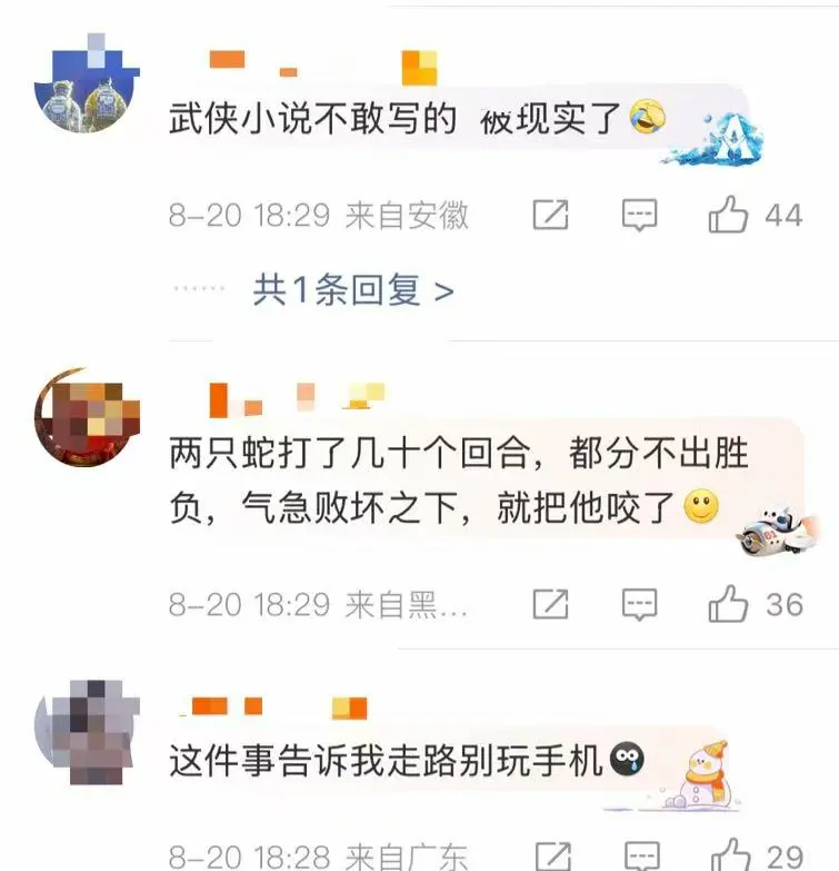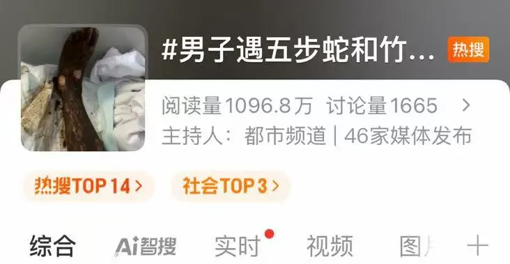 当事人女儿称,其父亲边走路边玩手机,没注意踩到了五步蛇,这条蛇当时在和另一条竹叶青蛇互相打斗,他不幸被两只毒蛇同时咬到。