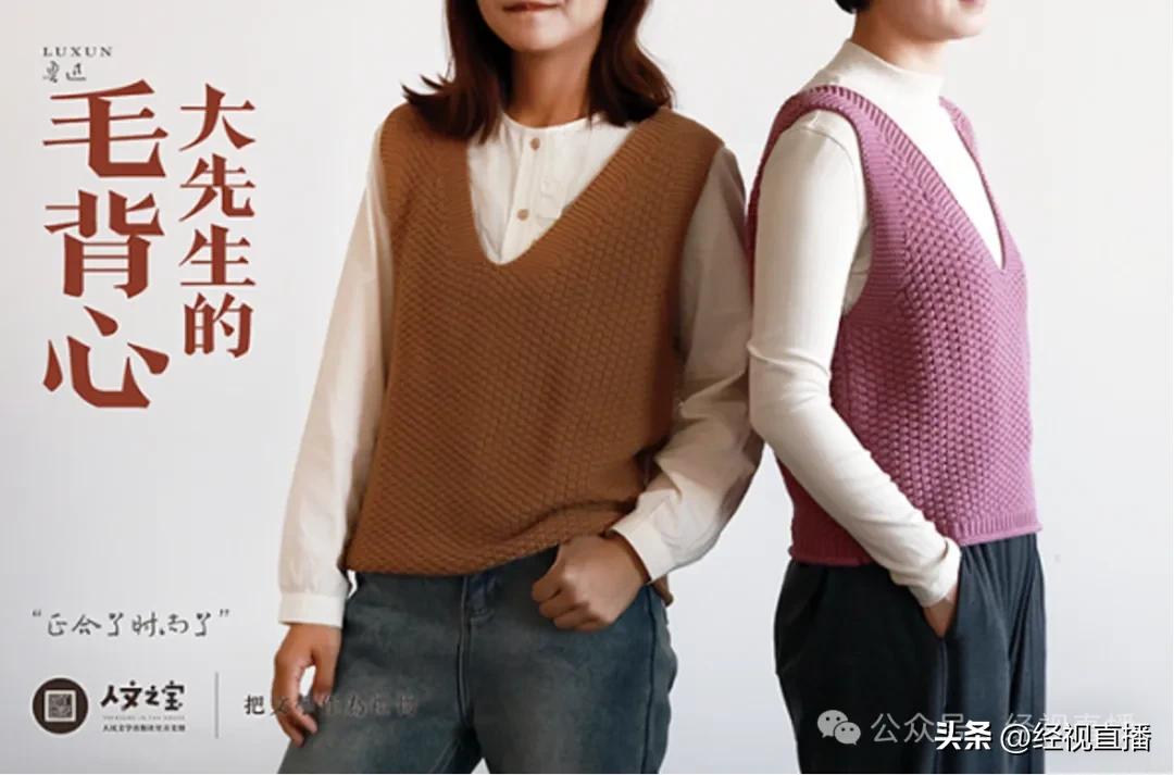8月21日,经视直播记者联系上人民文学出版社文创部。工作人员介绍,这款毛背心的原型来自1930年鲁迅的一件标志性穿搭——紫色绞花针织背心,原件现珍藏于鲁迅博物馆。1926年秋天,鲁迅收到许广平从广州寄来的一件毛背心。许广平在写给鲁迅的信中这样写道:“今天放假休息,早上无事,仍在寝室里继续编织……”(收录于《两地书》)而信中所说正在编织的,正是这件紫色毛背心。收到礼物后,鲁迅郑重穿上,甚至写信“炫耀”:“背心已穿在小衫外,很暖,我看这样就可以过冬,无须棉袍了。”(收录于《两地书》)