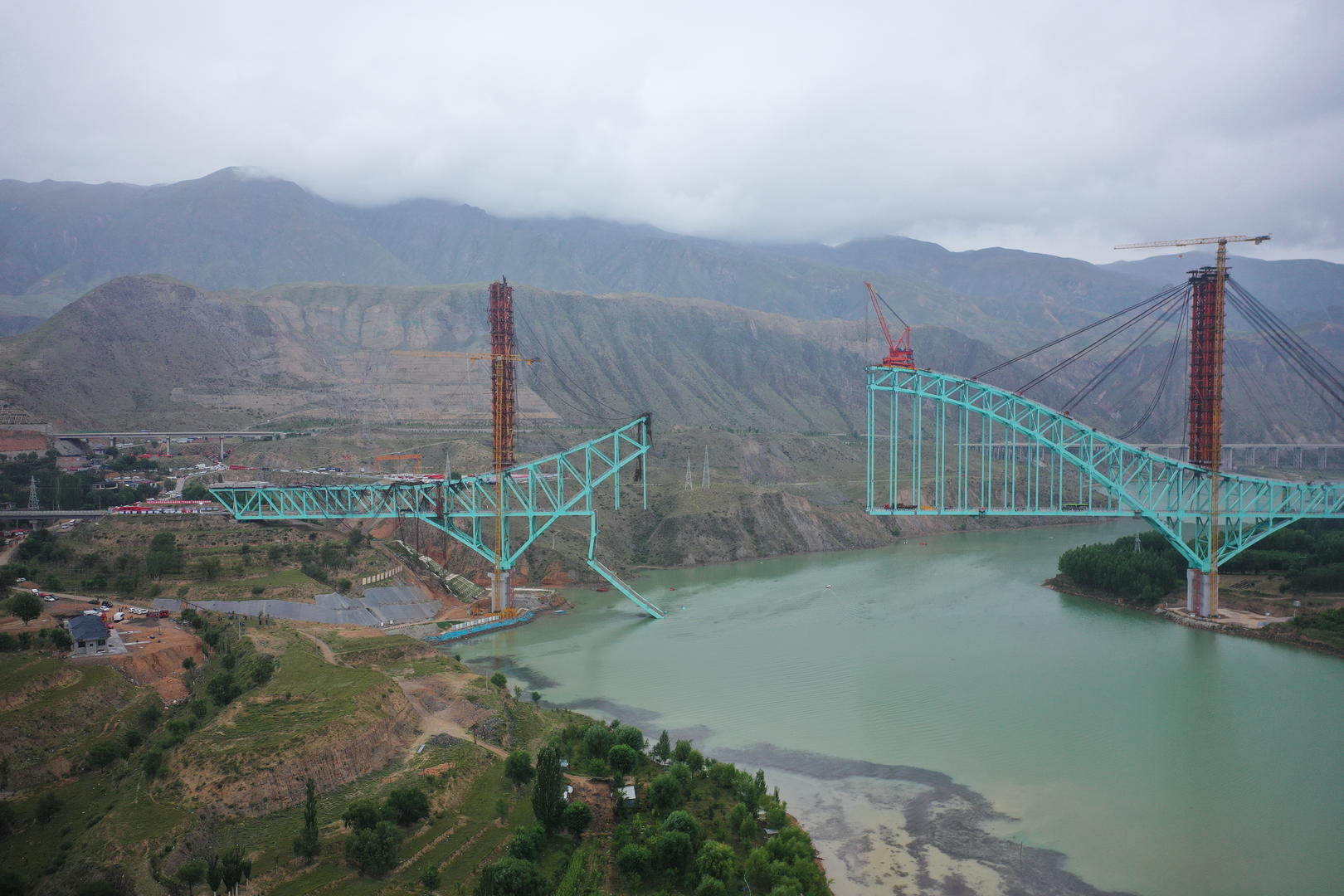 公开资料显示,尖扎黄河特大桥为中铁大桥局承建的川青铁路11标段尖扎黄河特大桥桥梁总长1596.20米,是目前世界最大跨度双线铁路连续钢桁拱桥,也是我国第一座跨越黄河的铁路钢桁拱桥。