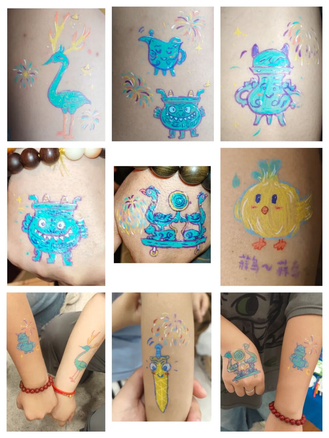 团队成员在游客手臂上进行彩绘。受访者供图