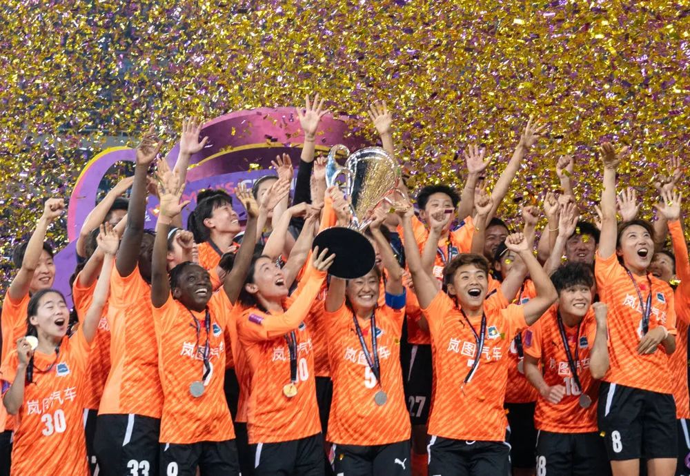 2025年5月24日,武汉车谷江大队成员庆祝夺得首届亚足联女足俱乐部冠军联赛冠军。新华社记者 伍志尊 摄