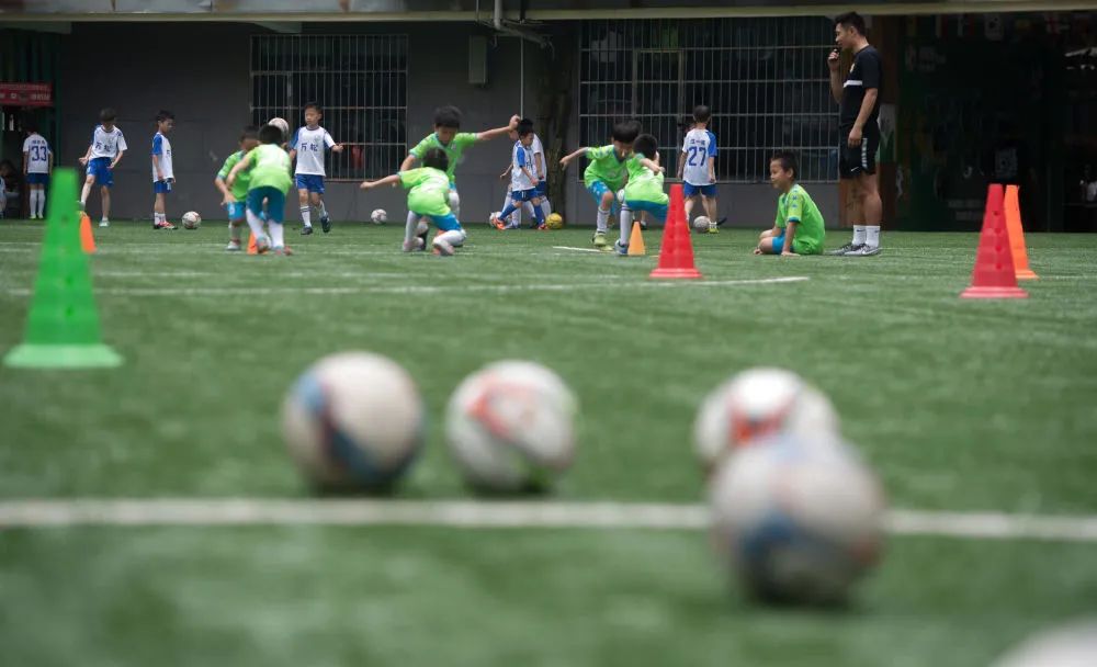 2024年5月31日,在湖北省武汉市江汉区万松园路小学,孩子们在教练指导下进行足球训练。新华社记者 杜子璇 摄