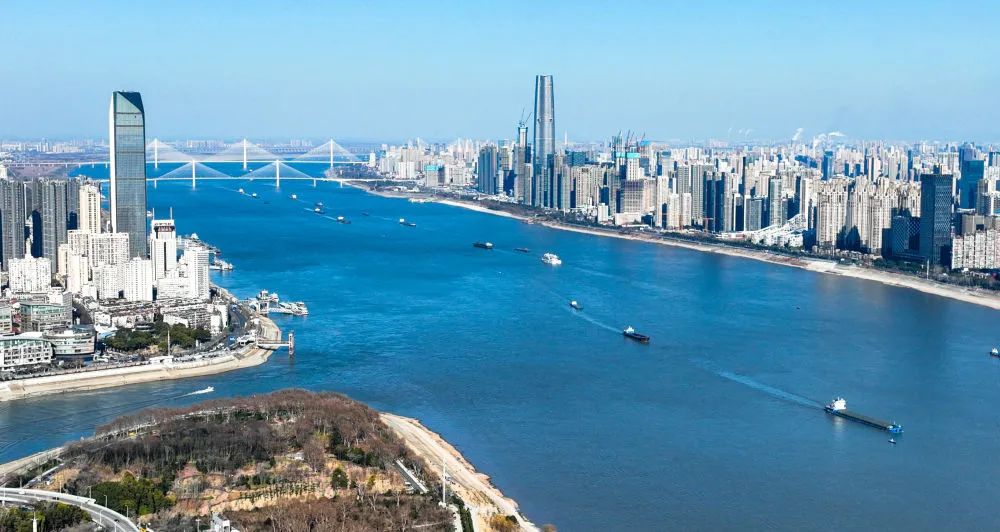 汉江在武汉汇入长江,将城市一分为三,右为武昌,左上为汉口,左下为汉阳。新华社记者 肖艺九 摄
