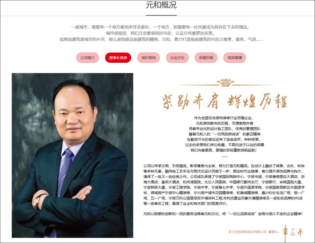 元和装饰董事长章建平说,自己专注装饰行业三十多年,一直致力于打造高品质的装饰工程,推动行业发展。“恳请媒体和平台,不要再错用我的照片了。”