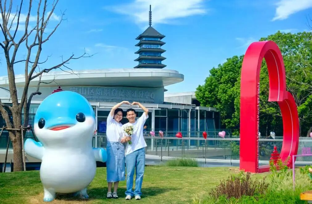 同日,宝山区婚姻登记滨江分中心在滨江畔试营业,巧妙结合滨水景观与“邮轮”主题,为新人们提供融合自然之美、文化底蕴与仪式感的登记体验,是探索婚姻登记与城市空间、文旅资源深度融合的创新实践。同时,樟岭路本部开展婚俗改革倡议活动,通过发放倡议书、签名承诺及公益宣传等方式,倡导简约婚仪、弘扬文明婚恋新风。本部与分中心协同联动、双向赋能,是宝山民政优化公共服务的具体举措,也为推动婚俗改革、提升城市文化软实力提供了生动注脚。