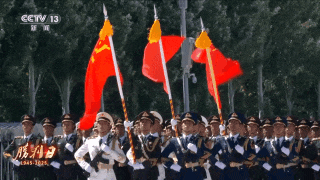 鸣响礼炮,意味着纪念活动的正式开篇。伴随礼炮声出场的国旗护卫队是唯一一支没有音乐伴奏、只能自己踩鼓点的队伍。他们要经过两次队形变换、四次步伐变换,从人民英雄纪念碑走到天安门广场旗杆下。