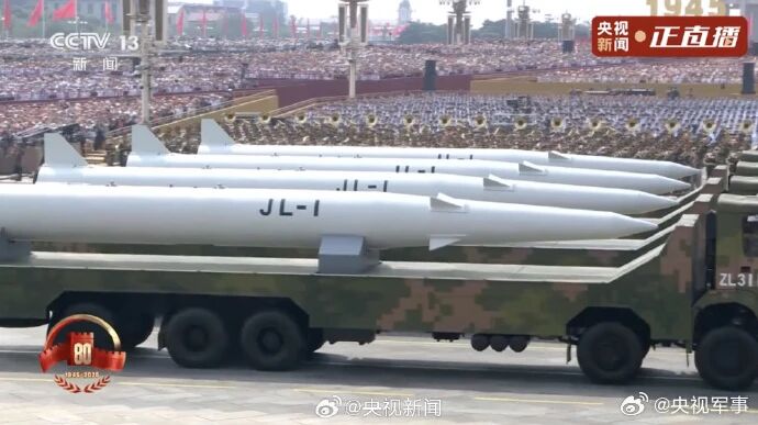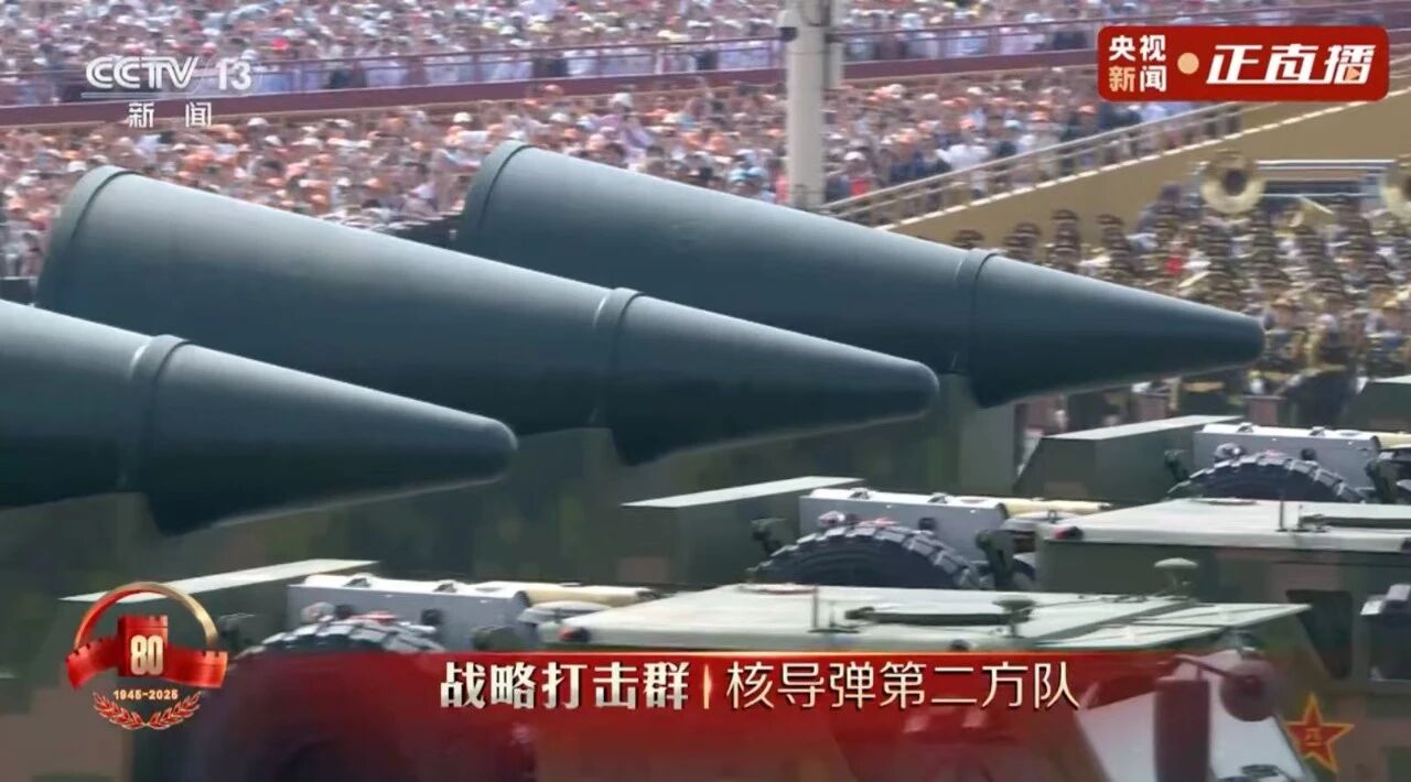 核导弹第一方队,受阅的“惊雷-1”空基远程导弹、“巨浪-3”潜射洲际导弹、“东风-61”陆基洲际导弹、“东风-31”新型陆基洲际导弹,首次集中展示我军陆、海、空基“三位一体”战略核力量,是维护国家主权、捍卫民族尊严的战略“王牌”。