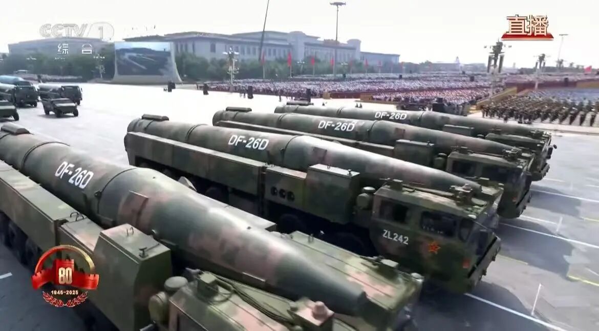高超声速导弹方队,受阅的鹰击-21、东风-17、东风-26D导弹,具备全天候作战能力。
