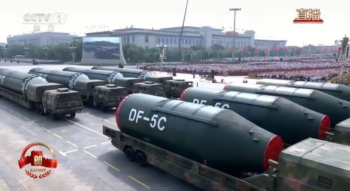 核导弹第二方队,“东风-5C”液体洲际战略核导弹亮相,打击范围覆盖全球。