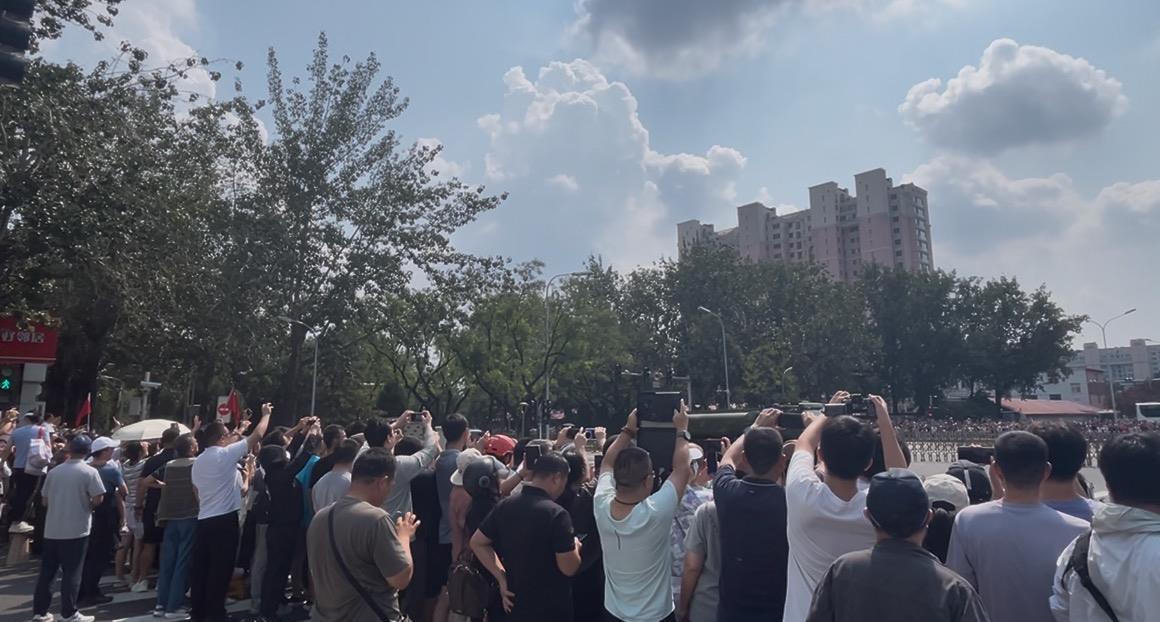 3日上午,不少群众已经早早等在复兴路与西翠路交叉口附近。在这里,市民可以隔着护栏,近距离观看装备方队撤离。为了看得更远,不少市民还自带板凳。记者粗略估计,沿着复兴路往西四环方向,道路两侧等待的围观群众队伍约达百米。