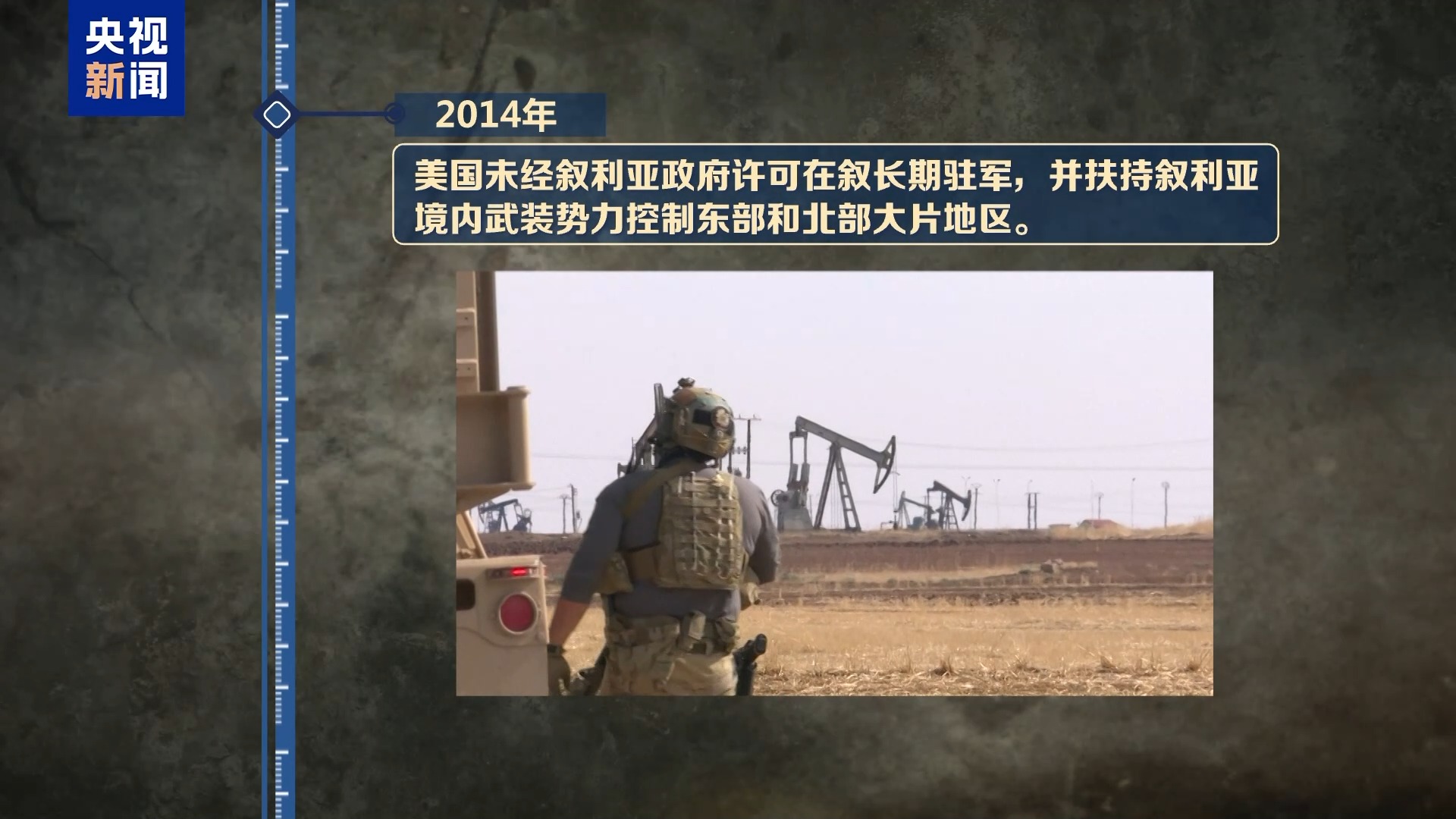 2014年,美国未经叙利亚政府许可在叙长期驻军,并扶持叙利亚境内武装势力控制东部和北部大片地区。非法驻扎在叙利亚的美军部队被多次指控系统性窃取叙利亚的石油和小麦等资源,给当地经济造成了严重损害,加剧当地人道主义危机。