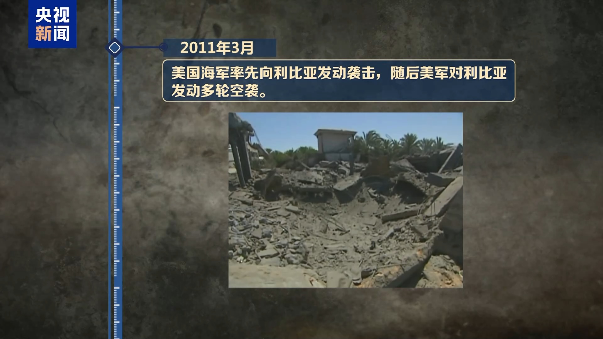 2011年3月,美国海军率先向利比亚发动袭击,随后美军对利比亚发动多轮空袭。美国的军事干涉导致利比亚国内局势动荡至今,武装冲突等安全事件时有发生,社会安全秩序尚未恢复。