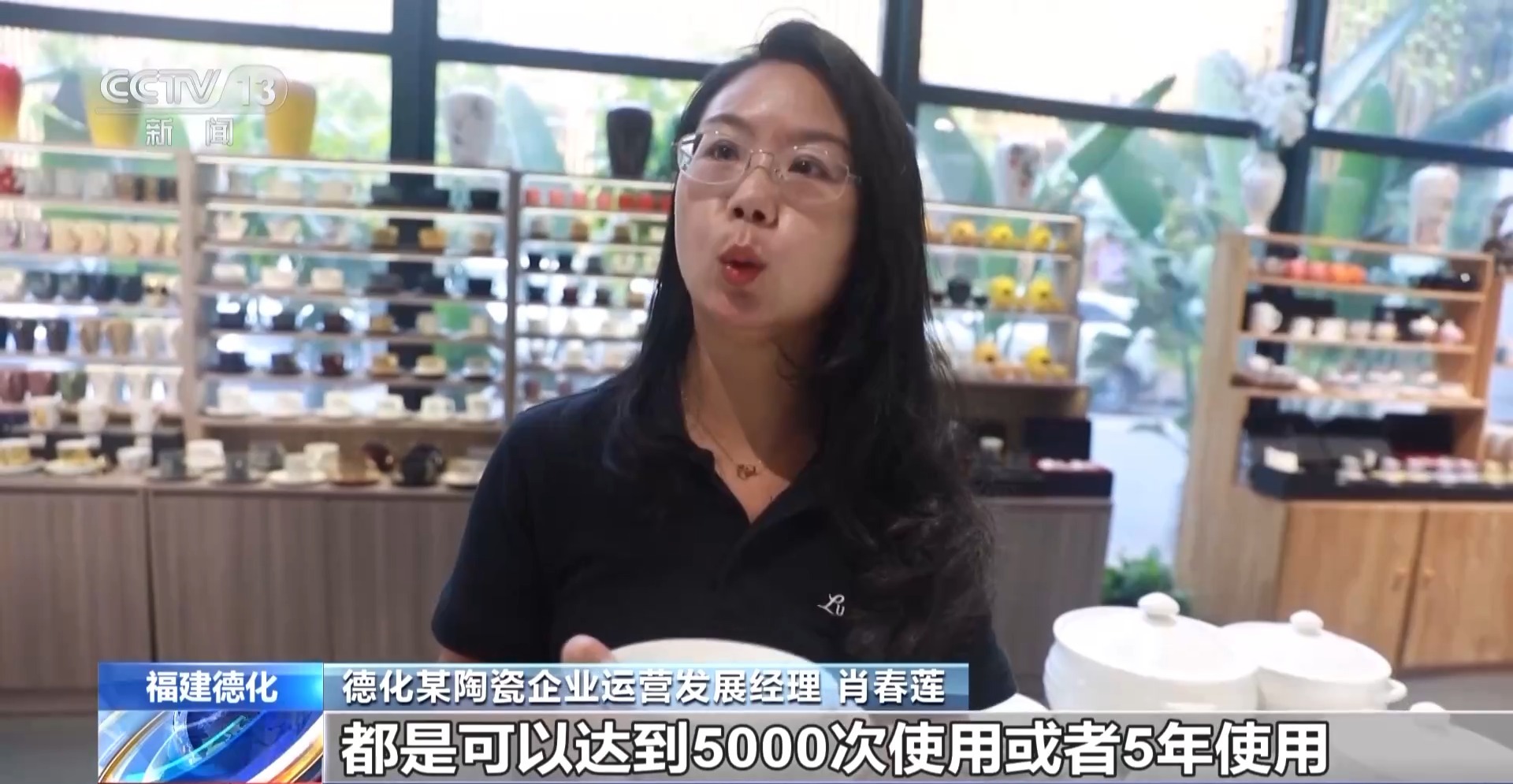 德化某陶瓷企业运营发展经理 肖春莲:有一些撞击或者是碰撞的话,都没有问题。这个碗在正常的使用下,都是可以达到5000次使用或者5年使用,而且能够保证光泽如新。