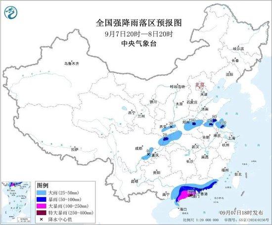 降水预报:9月7日20时至8日20时,广东中南部、广西东南部有暴雨到大暴雨,其中,广东西南部局地有特大暴雨。