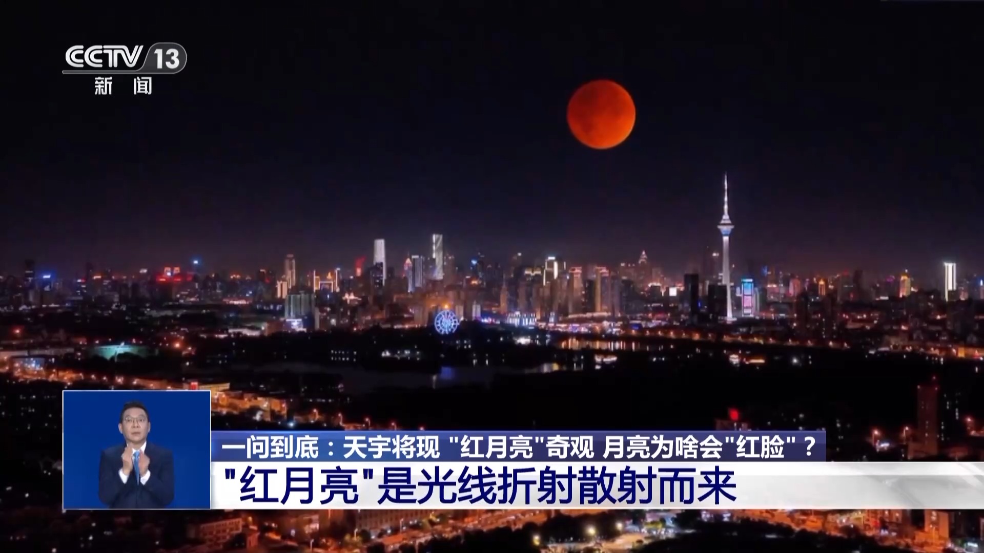中国科学院紫金山天文台科普主管王科超:这段时间只要天气允许,我们肉眼就可以看到这轮“红月亮”,并且在这一时间月亮的地平高度相对较高,不易受地面物体的遮挡,所以在空地上,在自家的阳台上,就可以欣赏到这一轮精彩天象。