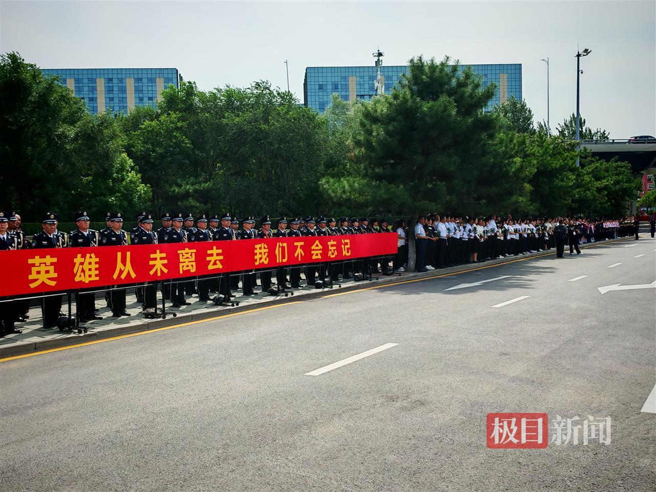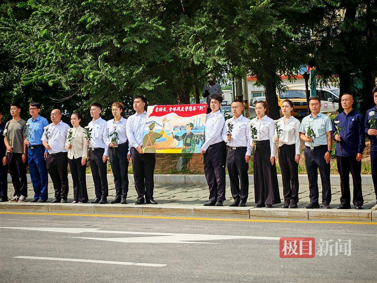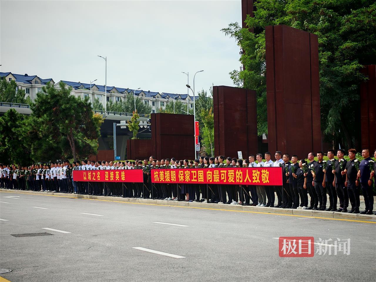 12日上午,极目新闻记者在沈阳抗美援朝烈士陵园门口看到,来自沈阳的中小学生、警察、军属代表整齐地排列在道路两侧,现场还有“英雄从未离去 我们不会忘记”“以城之名 迎接英雄”“抗美援朝 保家卫国 向最可爱的人致敬”等红色横幅。