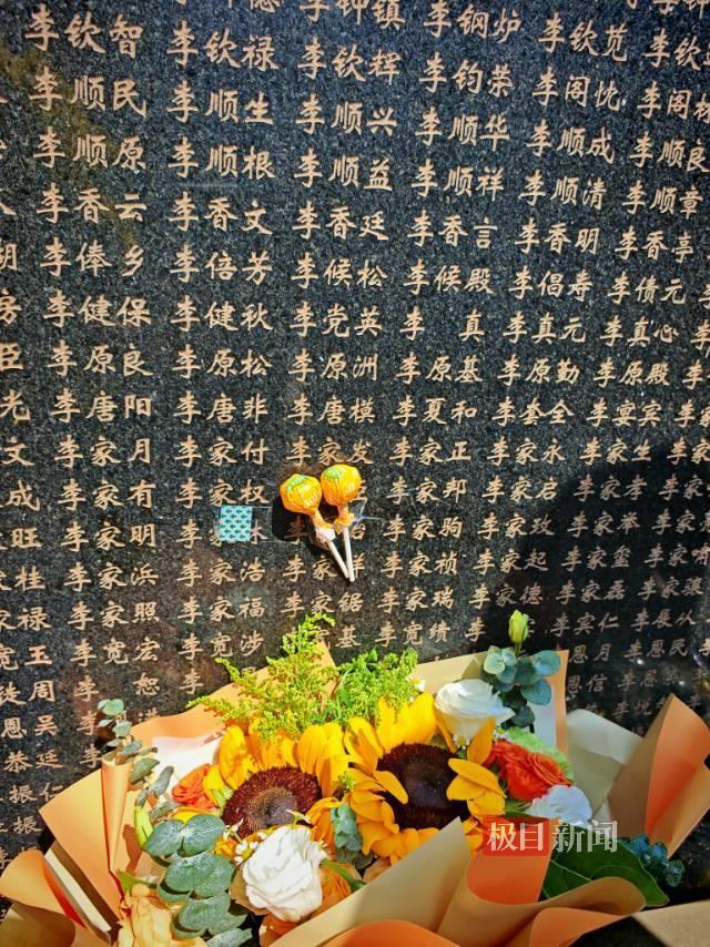 极目新闻记者注意到,曹家麟特别拿出了两颗棒棒糖,并将其贴在了李家发的名字前,“家发,这个糖是你妹妹一直惦记的,你离开前答应妹妹给她带糖果,今天妹妹给你带糖来了”,随后他又拿出一瓶白酒洒在了李家发的名字前,“这个酒是你家乡生产的古井酒,你尝一尝。”