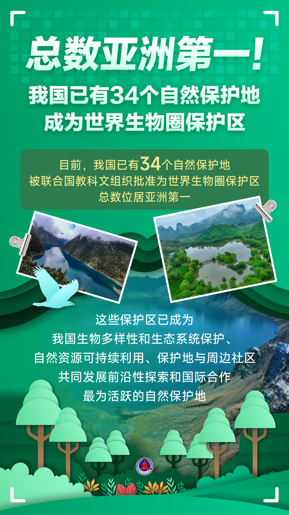 目前,我国已有34个自然保护地被联合国教科文组织批准为世界生物圈保护区,总数位居亚洲第一。这些保护区已成为我国生物多样性和生态系统保护、自然资源可持续利用、保护地与周边社区共同发展前沿性探索和国际合作最为活跃的自然保护地。