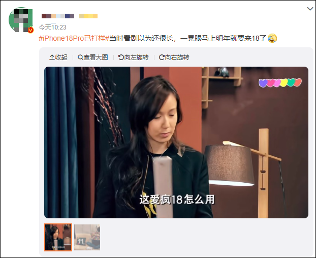 还有网友晒图调侃:看来iPhone18超长屏幕的梦想真的破灭了。