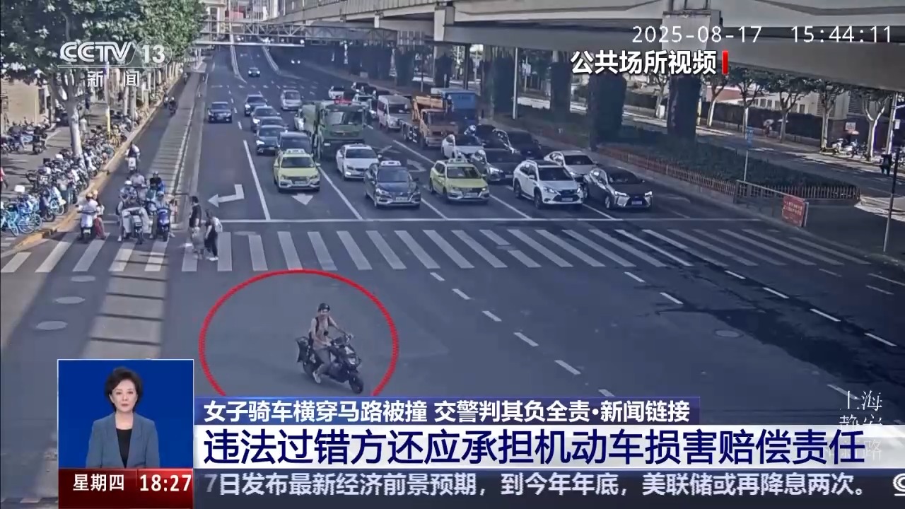 中国人民公安大学交通管理学院副院长 牛学军:比如说视频中这个骑自行车的女子,她在参与交通活动的过程中,其实她身上并没有任何安全防护设备,在这起事故中,她受了轻伤,造成了她个人的人身伤害。另外一种情况就是机动车驾驶员也会因为非机动车的突然出现而采取紧急避让措施,这个时候如果严重的话,也会对其他的交通参与者造成人身伤害,甚至于导致机动车的车毁人亡。