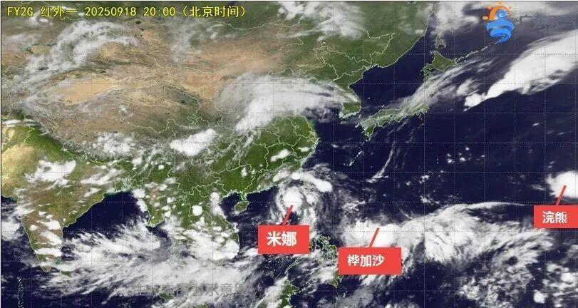 至此,这两个台风与第17号台风“米娜”形成“三台共舞”的局面。