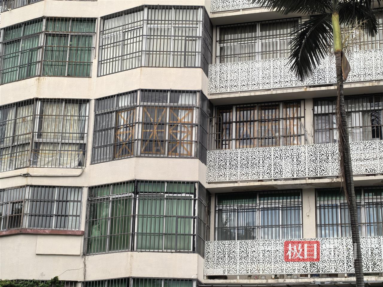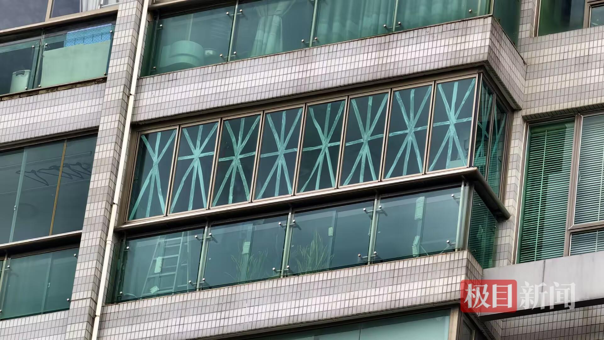 抬头往上看,多户居民家也是在玻璃上贴了米字型胶带用于防风。
