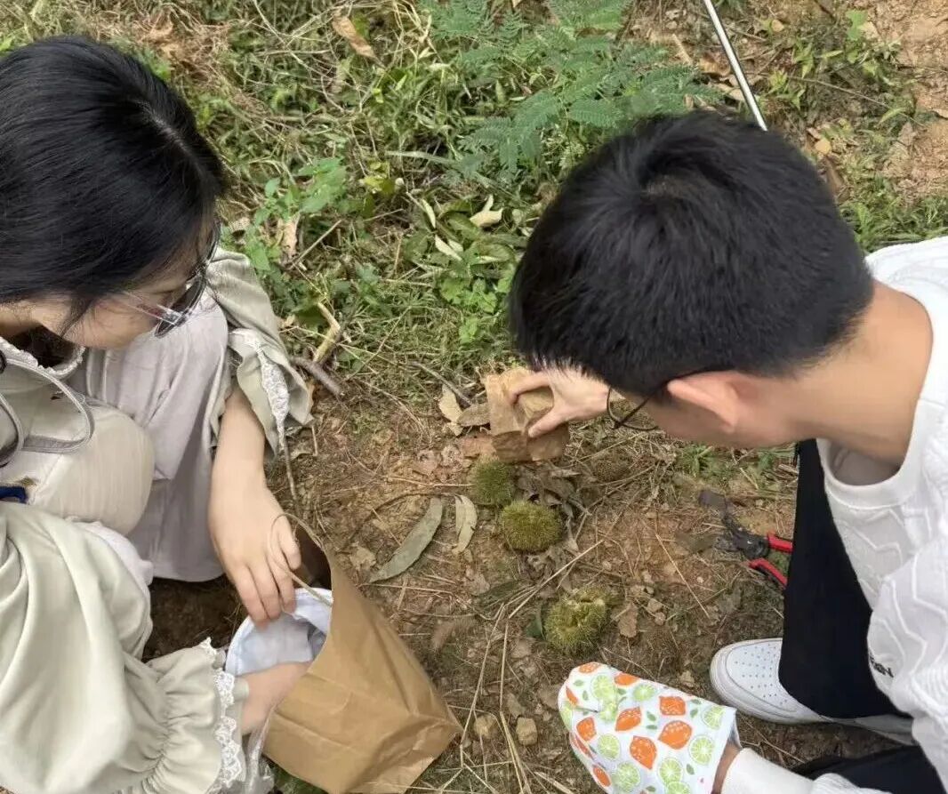 许多有经验的家庭做足准备,防滑鞋、加厚手套、夹子一应俱全。一位爸爸耐心教孩子用石头轻敲板栗取出果实,他说:“这不只是一次采摘,更是一堂生动的自然课。”